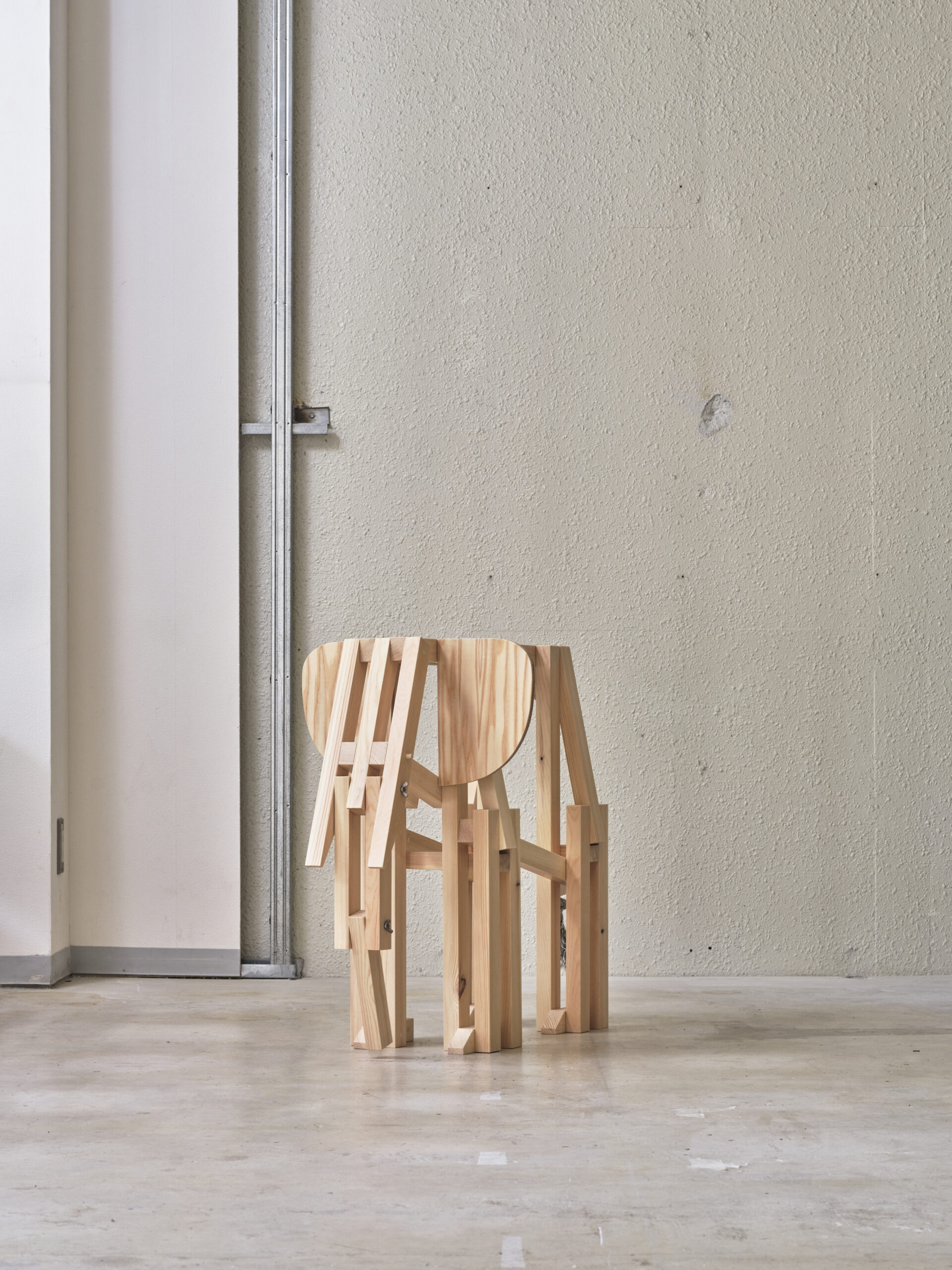 TANKとの協働により制作され、30×40mm の垂木廃材およびベニヤ材を主素材として構成されている。
