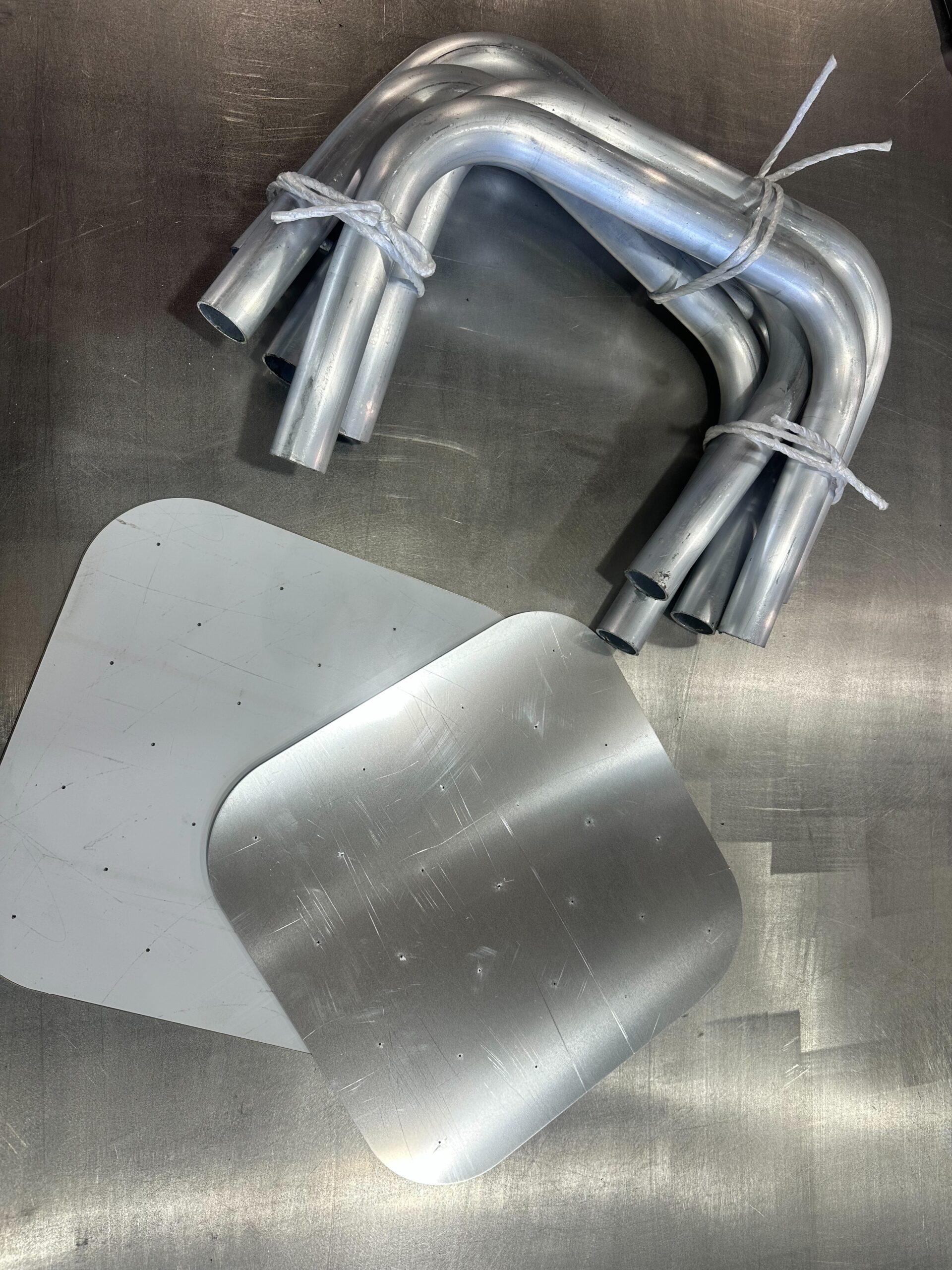 To ensure that the HQ-supplied fixtures align with precision, 1mm perforations were drilled into the top plate at a 45mm pitch. In addition, 10mm aluminum pipe legs were attached to the frame, raising the tray by 5mm to create a sense of lightness and subtle elevation.